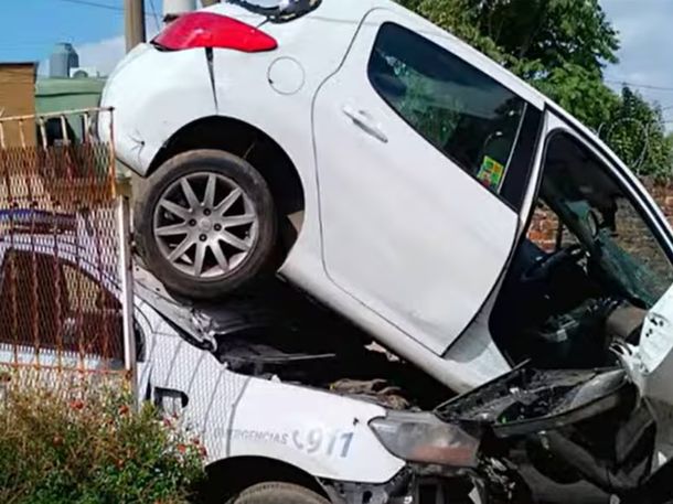 Persecución y choque en La Matanza: dos autos se incrustaron en casas, uno encima del otro