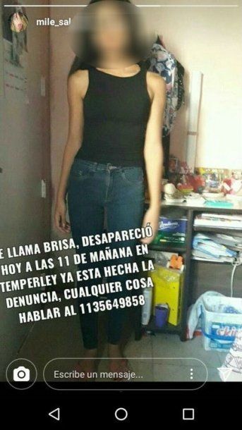 Según la policía, un hombre se comunicó con la seccional 9na de Lomas de Zamora indicando que "desde el miércoles pasado Brisa se encontraba en su casa". De acuerdo a lo que declaró, en todo momento la adolescente afirmó que "se llamaba Natalia y tenía 19 años".