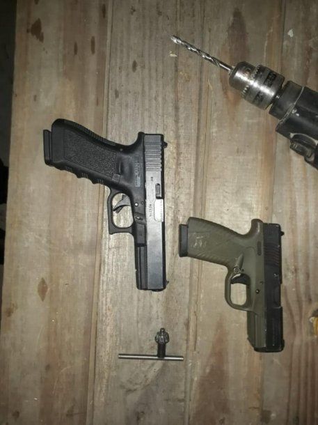 Los peritos de la Policía bonaerense constataron que los tres baleados yacían dentro del inmueble donde secuestraron una pistola 9 milímetros marca Bersa y otra Glock que habían sido utilizadas para cometer el asalto.