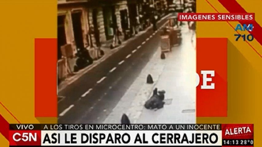 La víctima iba camino a la cerrajería donde trabajaba cuando se encontró con un abogado al que habían asaltado. Quedó en medio de la balacera, en pleno Microcentro porteño. LAS IMÁGENES PUEDEN HERIR LA SUSCEPTIBILIDAD DEL LECTOR.