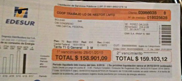 La factura de noviembre fue imposible de pagar para los 14 integrantes de la cooperativa por lo que se vieron obligados a entrar en un plan de seis cuotas para que no les cortaran la luz. La siguiente boleta llegó en diciembre con el monto mensual más una parte de la deuda y los intereses acumulados, y la que venció el 28 de enero se volvió viral con un total de $158.901.