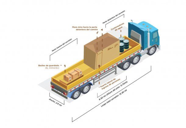 La caja transportadora pesa 5.750 kilos, tiene un largo de 5 metros y supera los 3 metros de altura.
