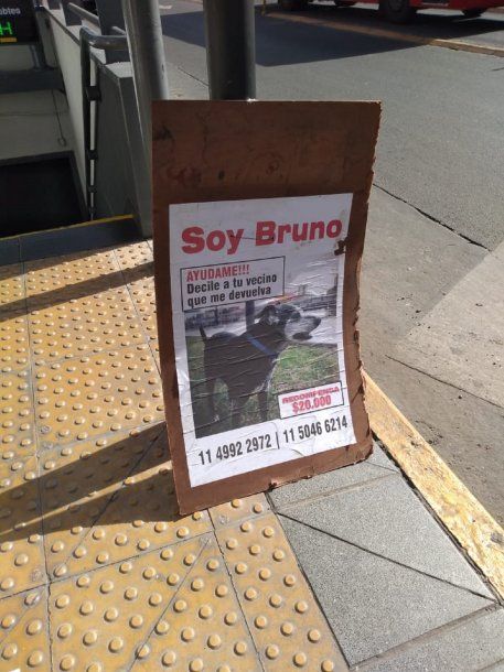 La ciudad está empapelada con enormes carteles que piden colaboración. "Soy Bruno, ayudame, decile a tu vecino que me devuelva", se puede leer con una foto del can. Es que Gustavo sospecha que alguien lo tiene de buena fe y no se enteró que atrás hay seis personas angustiadas por esa pérdida.