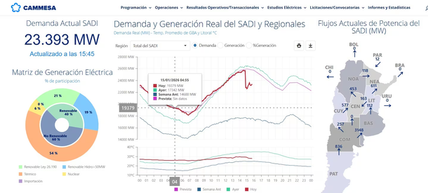 En tanto, la página de la Compañía Administradora del Mercado Mayorista Eléctrico Sociedad Anónima (CAMMESA) mostró que el corte se dio luego del pico de la demanda de energía, en una tarde signada por una alerta por calor extremo, con temperaturas que treparon hasta los 35 grados en el AMBA.