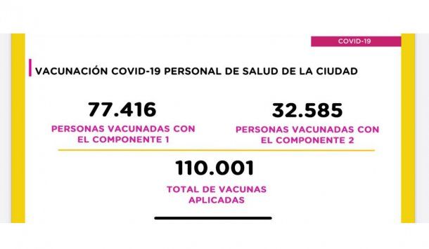 Respecto al personal de salud y geriátrico, del total de 150 mil, ya fueron vacunados con la primera dosis 77.416 personas, de las cuales poco más de 32 mil tienen ya las dos dos dosis.