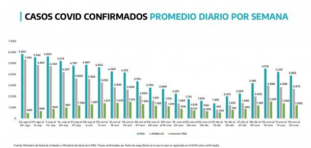 En promedio, los contagios de la semana del 18 al 24 de enero se redujeron a 3.882 casos versus la semana del 4 al 10 de enero que arrojó una media diaria de 4510.