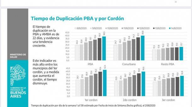 No obstante a ello, remarcó que en el Gran Buenos Aires hay un "crecimiento casi neutro de las camas de terapia intensia a razón de 1 por día. Eso es un buen dato, una buena señal, esperamos que siga así, que siga descendiendo, al igual que la duplicación de casos que viene bajando la velocidad. El R no lo tomamos más porque hoy en día estamos descubriendo que hay muchos casos que no se notifican o son asintomáticos entonces no podemos basarnos sólo con los PCR para saber si estamos bajando las infecciones", aclaró el ministro.