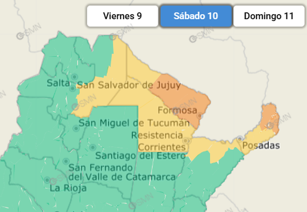 En tanto, los territorios del país que estarán afectados por la alerta amarilla son Salta, Chaco y Corrientes.