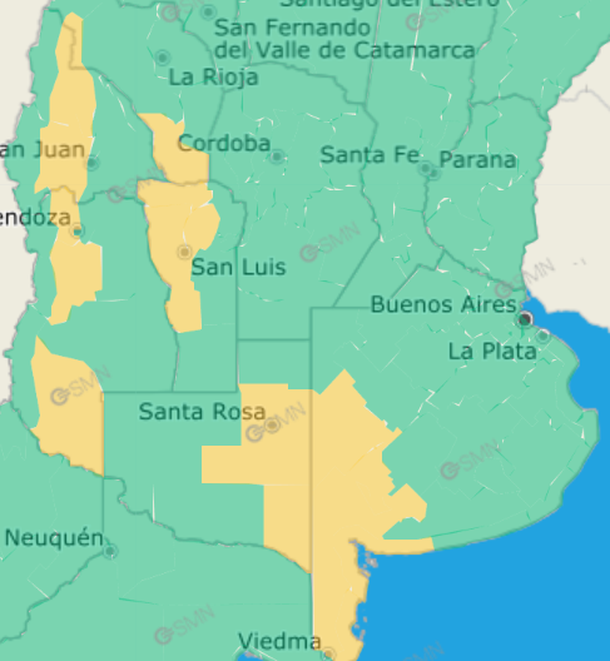 Las provincias bajo alerta por vientos fuertes este sábado son Buenos Aires, La Pampa, Mendoza, San Luis y La Rioja, más las zonas costeras de Tierra del Fuego, Santa Cruz y Chubut.