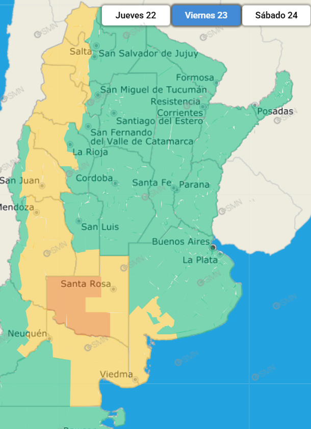 Los territorios del país que estarán afectados por la alerta amarilla de este martes son Salta, Jujuy, Catamarca, La Rioja, Tucumán, San Juan, Mendoza, San Luis, La Pampa, Neuquén, Chubut y Buenos Aires.