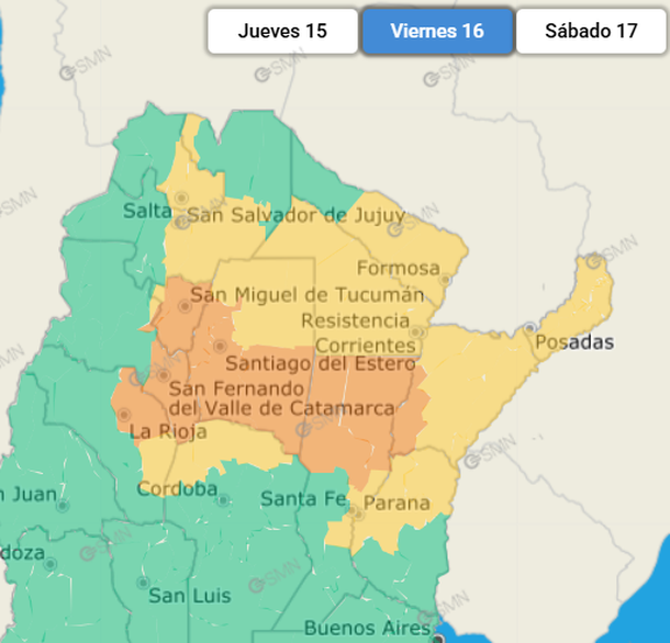 La primera advertencia del organismo nacional abarca a las provincias de Tucumán, Catamarca, La Rioja, Santiago del Estero, Santa Fe y Corrientes.