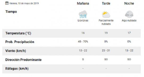 Pronóstico del tiempo del 10 de mayo de 2019