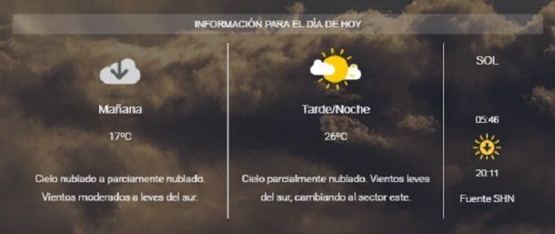 Según el informe del SMN, la mínima estaría en los 17° y la máxima en los 26°.