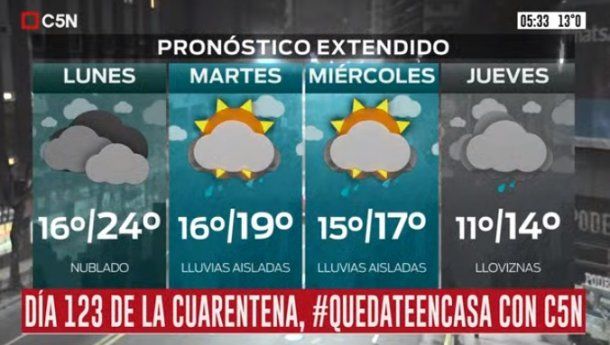 El organismo prevé una jornada con cielo mayormente nublado, vientos del sector norte rotando al noroeste, y seguirán las temperaturas elevadas para esta época del año, con una mínima de 14 grados y una máxima de 21.