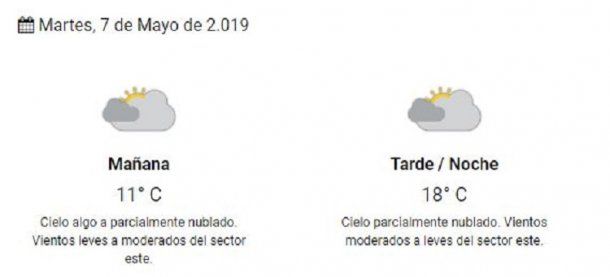 Pronóstico del tiempo del martes 7 de mayo