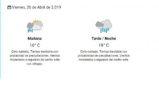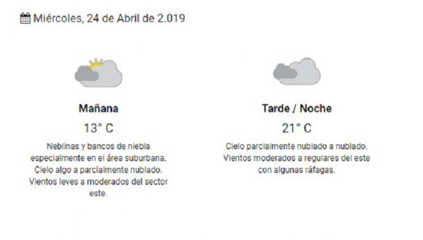 Pronóstico del tiempo del miércoles 24 de abril de 2019