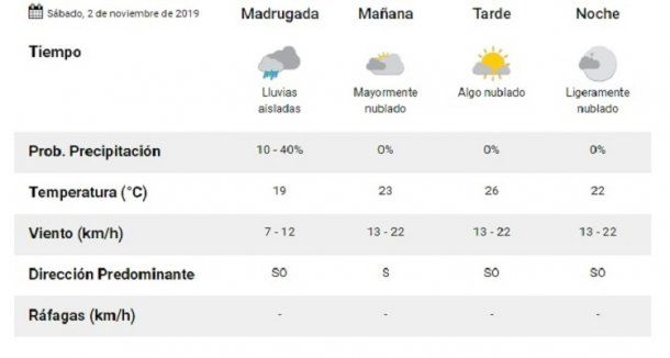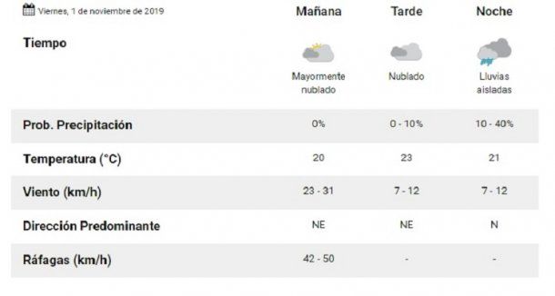 Pronóstico del tiempo del viernes 1 de noviembre