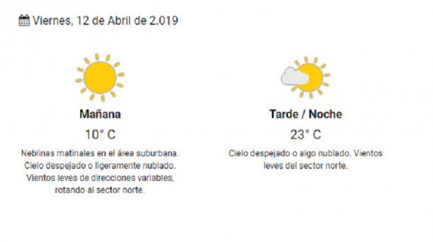 Pronóstico del tiempo del viernes 12 de abril de 2019