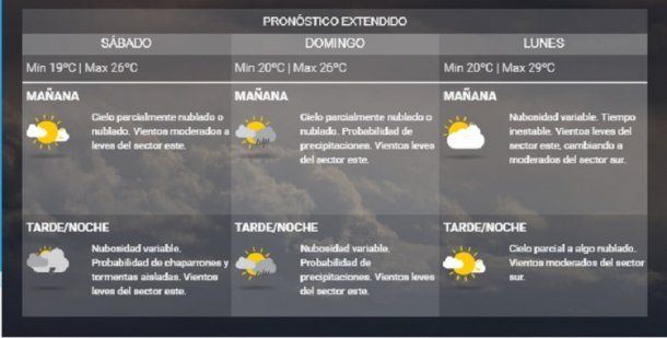 Para el sábado se estima una mejora por la mañana y por la tarde noche hay probabilidad de chaparrones y tormentas aisladas.