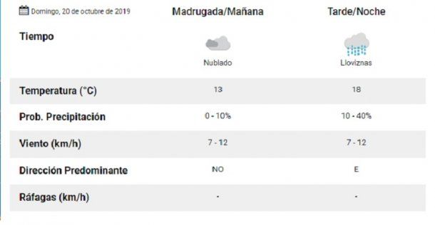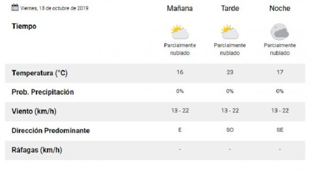 Pronóstico del tiempo del viernes 18 de octubre de 2019