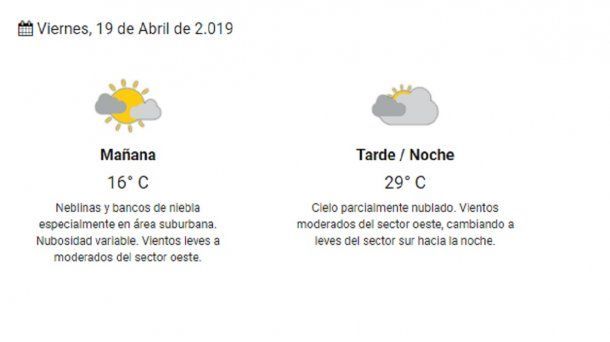 Pronóstico del tiempo del viernes 19 de abril de 2019