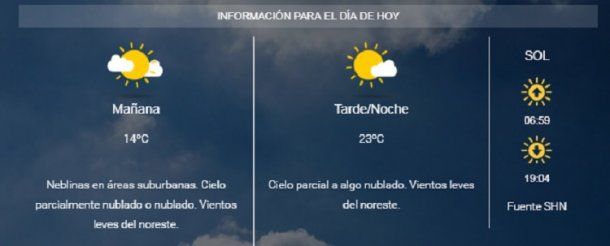 El Servicio Meteorológico Nacional pronostica un viernes fresco con una mínima de 14° y una máxima de 23°.