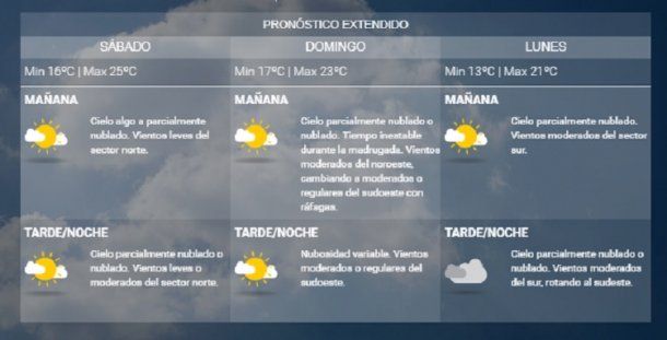 El sábado se estima una temperatura entre los 16 y los 25 grados; el domingo la mínima estaría entre los 17° y los 23°.