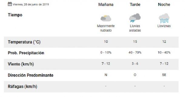 Pronóstico del tiempo del viernes 28 de junio de 2019