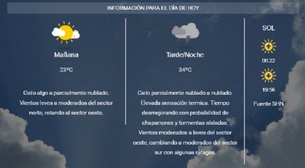 Según el organismo las temperaturas estarán entre los 23° y los 34°.