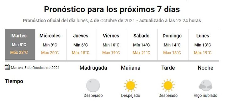 Así, la jornada se presenta con cielo despejado y temperaturas que irán de 8 a 23 grados.