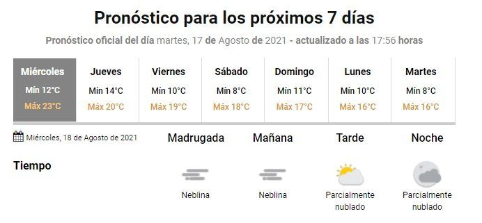El Servicio Meteorológico Nacional prevé un miércoles con neblinas, cielo parcialmente nublado y temperaturas agradables El pronóstico del tiempo.
