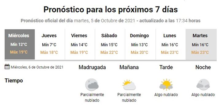 En este sentido, se espera una jornada con cielo parcialmente nublado a algo nublado, una mínima de 12 grados y una máxima de 19.