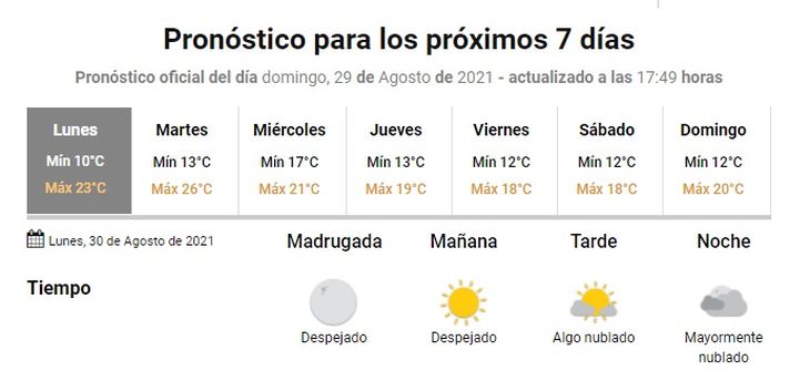 Según el SMN, este lunes tendrá cielo despejado a algo nublado, y temperaturas que oscilarán entre 10 y 23 grados.