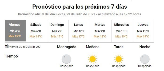 De esta manera, la jornada variará entre una mínima de 3 grados y una máxima de 15, con una sensación térmica de 3 gados.