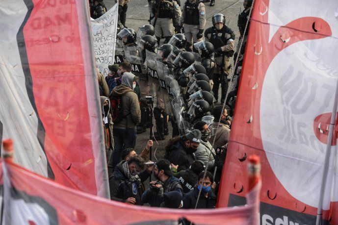 En tanto, el denominado sindicalismo combativo y otros "sectores en lucha por el trabajo" desarrollaban una concentración en las inmediaciones del Obelisco y posteriormente anunciaron que marcharán a la Plaza de Mayo, donde realizarán un acto pidiendo "aumento de salarios, vacunas y trabajo".