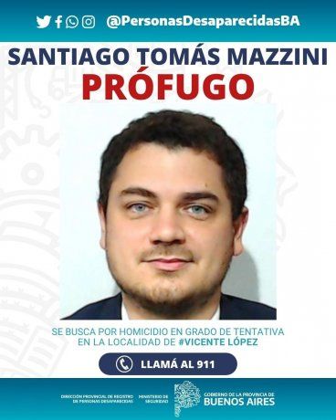 Mazzini, de 37 años, atropelló e hirió a un motociclista tras una supuesta discusión de tránsito en el partido bonaerense de Vicente López, por lo que fue imputado por "homicidio en grado tentativa" y es buscado intensamente por cuatro fuerzas federales y rige una alerta en Migraciones para impedir que salga del país.