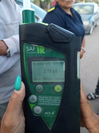 A los pocos minutos, y mientras estaba siendo entrevistado por la Policía, llegaron los funcionarios de Tránsito Municipal y le practicaron el test de alcoholemia, y dio como resultado 2,13 gramos de alcohol por litro de sangre.