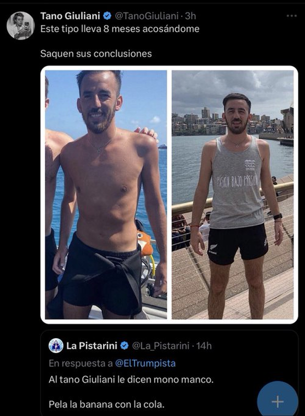 Javier Smaldone, especialista en seguridad informática y muy activo en redes sociales, recordó que antes de la llegada de Milei al Gobierno, "La Pistarini" y "Gordo Dan" eran parte de un grupo que hostigaba mujeres feministas.