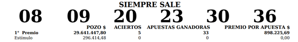 Números oficiales sorteo Siempre Sale