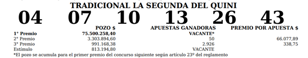 Quini 6: números oficiales sorteo Tradicional