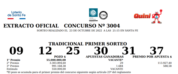 Para controlar la boleta del Quini 6 siempre hay que utilizar el extracto oficial para no tener ningún tipo de dudas: todos los números del sorteo del miércoles 26 de octubre de 2022.