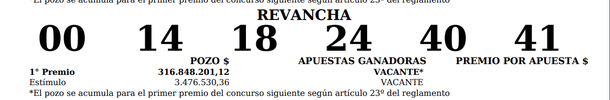 Números oficiales sorteo Revancha
