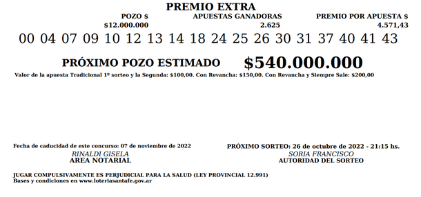 Números oficiales sorteo Premio Extra