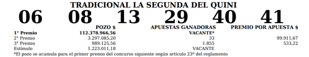 Quini 6: números oficiales sorteo Tradicional