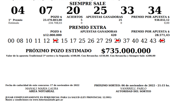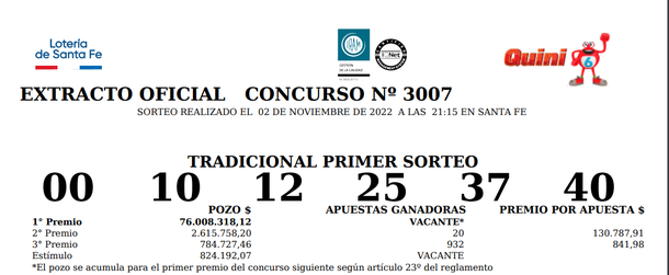 Para controlar la boleta del Quini 6 siempre hay que utilizar el extracto oficial para no tener ningún tipo de dudas: todos los números del sorteo del miércoles 2 de noviembre de 2022.