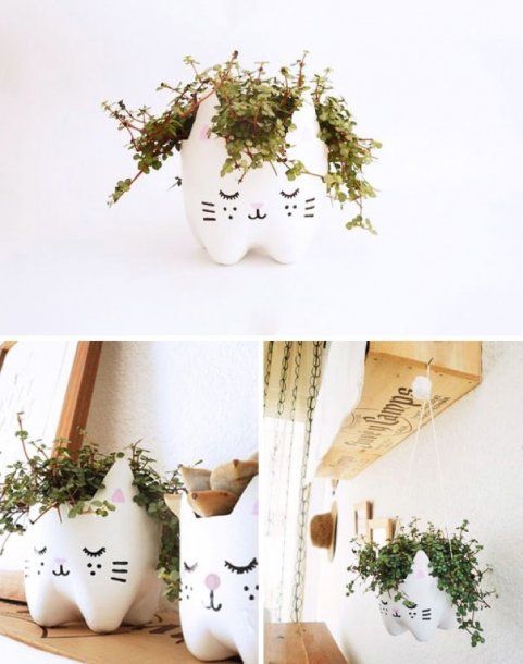 13. Este lindo macetero fue hecho con la base de una botella de plástico