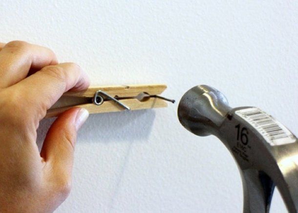 1. Una pinza de ropa puede ser perfecta para no golpearte los dedos con el martillo