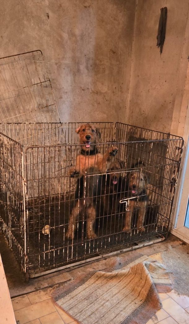 En el allanamiento se comprobó la existencia de un criadero ilegal de perros Airedale Terrier, encontrándose 23 ejemplares en condiciones inadecuadas. Entre ellos, 5 cachorros de 3 meses aproximadamente, 14 hembras adultas y 9 machos jóvenes y adultos.