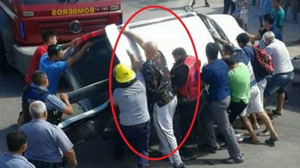 Un auto y una camioneta chocaron y tres personas debieron ser rescatadas por los bomberos con heridas leves. Los testigos captaron varias imágenes de ese momento y en una ellas se ve una silueta rara que se encuentra parada en la puerta de la ambulancia mirando la escena, pero no se puede determinar con detalle de qué se trata.