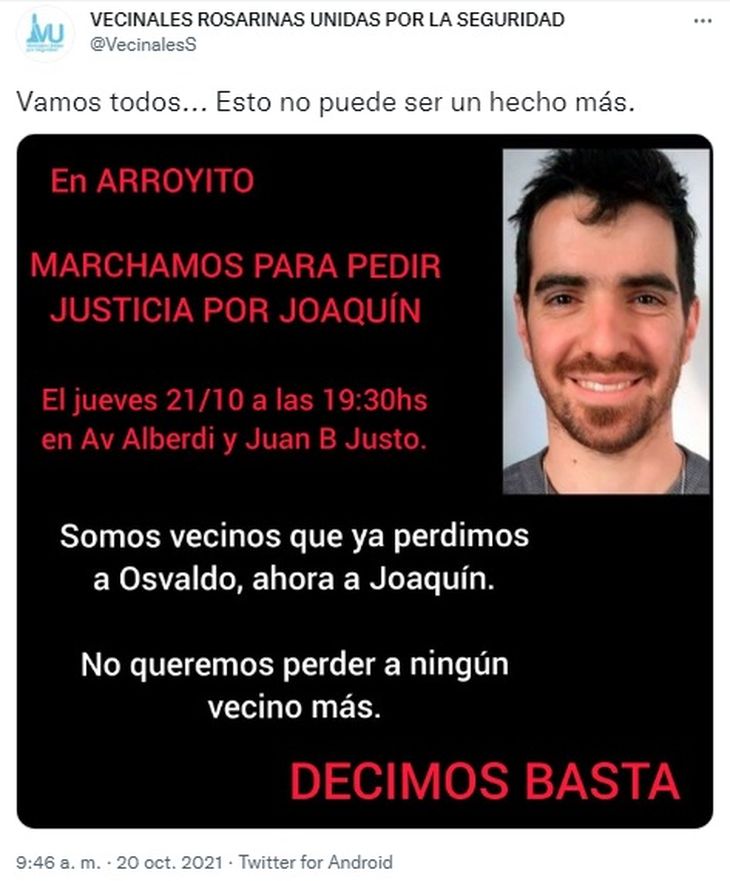 A una semana del arribo de los efectivos de las fuerzas de Seguridad, otro crimen conmociona a los vecinos de Rosario y ya suman 187 homicidios en lo que va del 2021. Joaquín Fernando Pérez, de 34 años, murió tras recibir tres disparos por parte de dos delincuentes que lo asaltaron cuando fue a guardar su auto en la cochera. La víctima era arquitecto, estaba casado y tenía una hija de dos años.